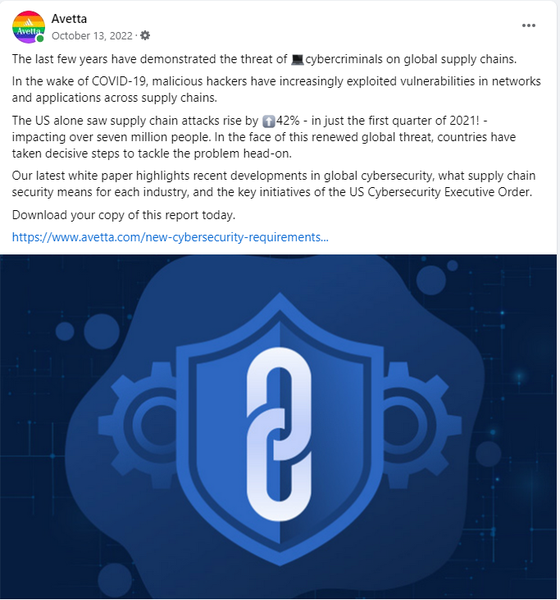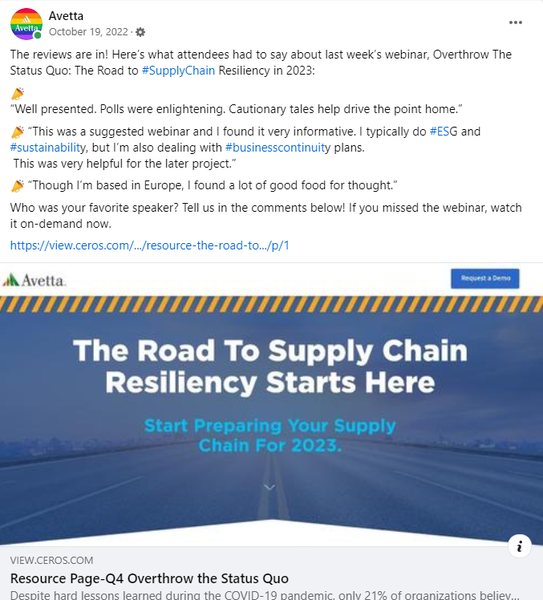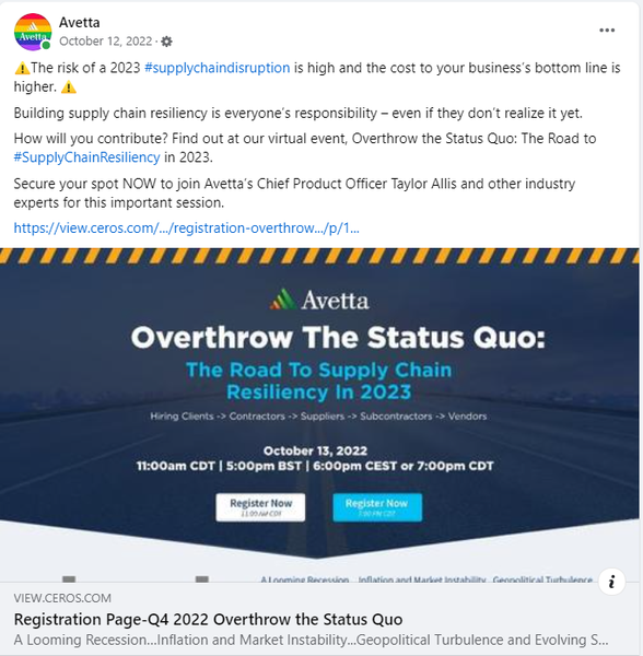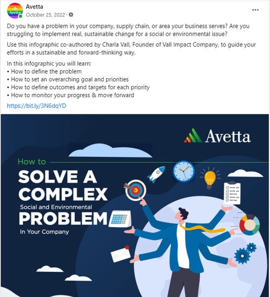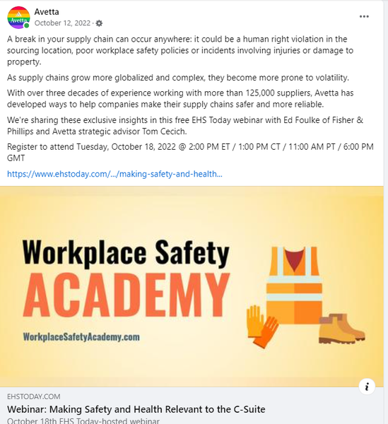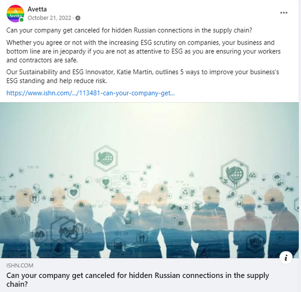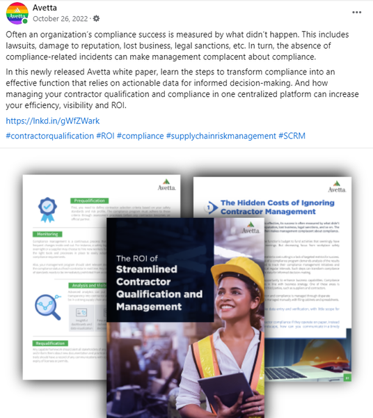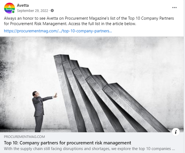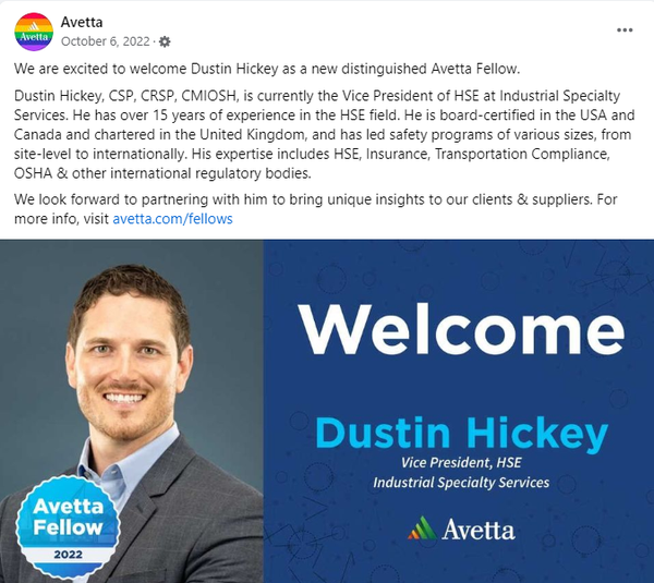 Below are samples from the Utah-based, SaaS company Avetta. In addition to the company's presence, I managed profiles for seven C-Suite Executives, samples provided upon request.